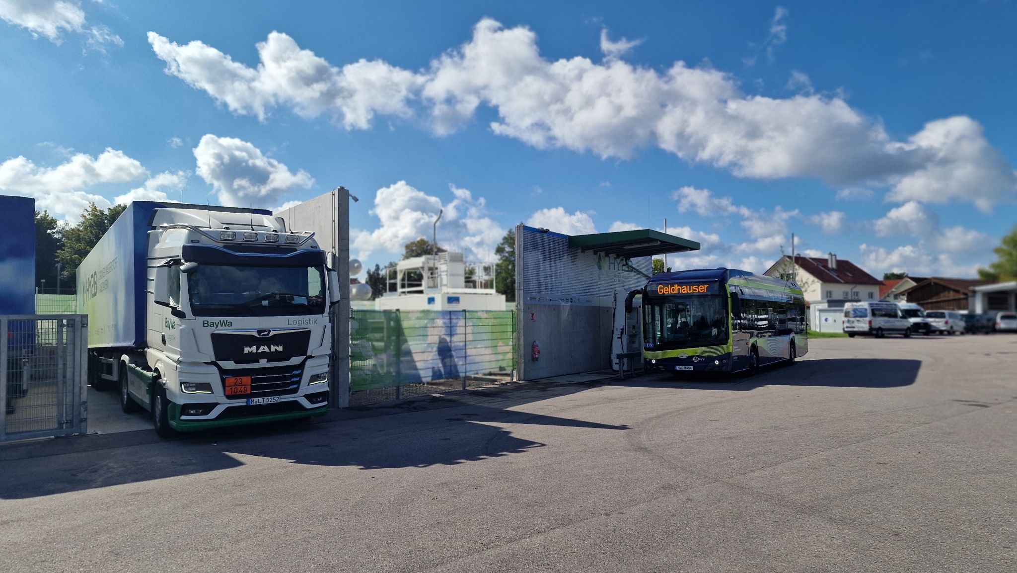 Am 1.10.2025 konnten wir das erste Mal 100% grünenWasserstoff mit RFNBO Qualität (Renewable Fuel of Non-Biological Origin), netzdienlich erzeugt am Elektrolyseur Pfeffenhausen an der Tankstelle Hofolding auf dem Betriebshof von Martin Geldhauser anliefern und in einen Bus des Münchner VerkehrsVerbund (MVV) mit RFNBO füllen.
