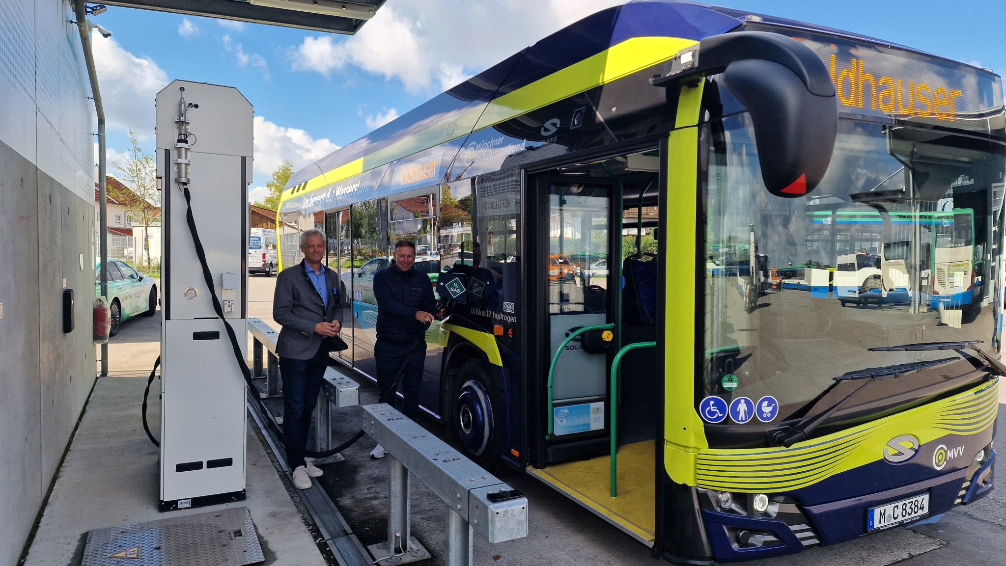 Ab sofort fahren die Busse des Landkreis München im MVV und alle anderen Fahrzeuge, die an der Tankstelle der Hy2B Wasserstoff GmbH in Hofolding betankt werden, mit 100% RFNBO grünemWasserstoff aus regionaler Erzeugung.